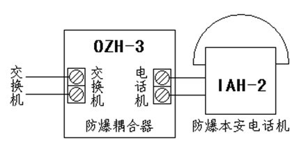 1. 通過OZH—3型防爆電話機耦合器可與24~60伏的各種型號電話交換機配接使用。