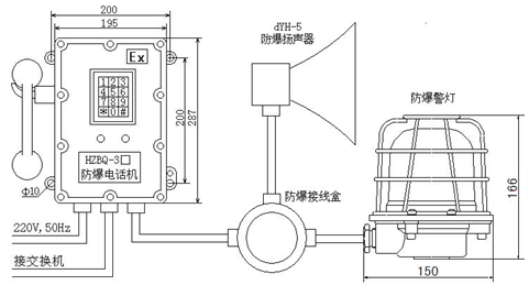 防爆擴音電話機和防爆揚聲器、防爆警示燈鏈接示意圖